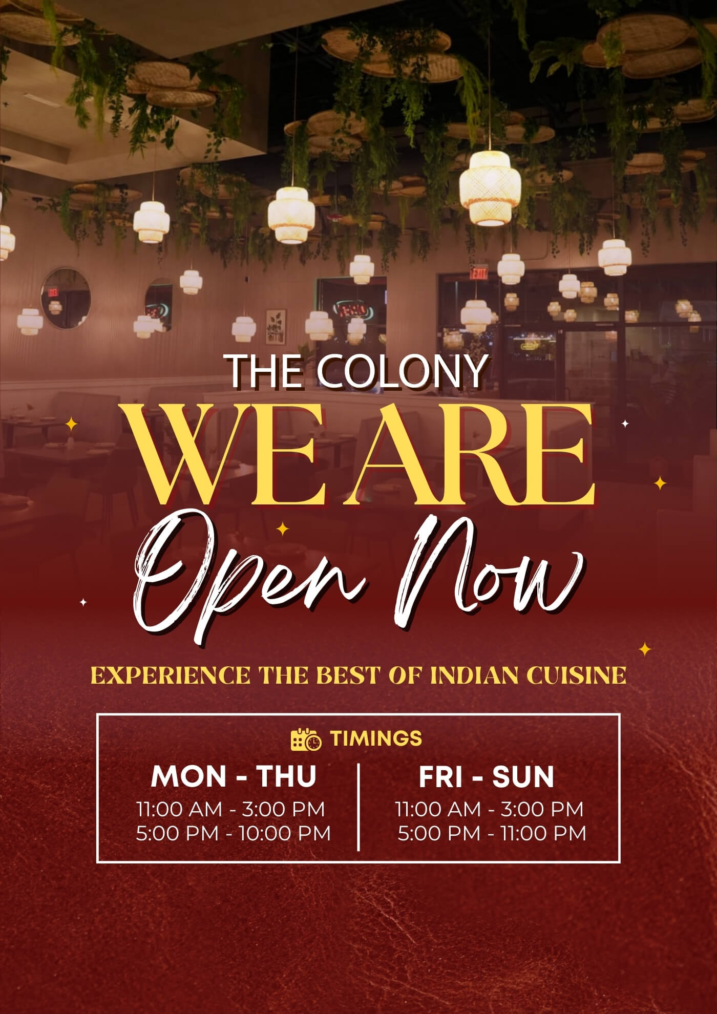 At Tabla Indian Restaurant, we bring you a rich variety of authentic Indian food in Colony, offering something scrumptious for every palate. From North Indian classics to South Indian favorites, our menu is crafted to reflect the diverse culinary traditions of India.